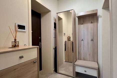 В квартире имеется всё необходимое для проживания: оборудованная кухня, удобная двуспальная кровать с матрасом класса премиум, комфортный двуспальный раскладной диван, 3 телевизора, два кондиционера, теплый пол в прихожей и на кухне.