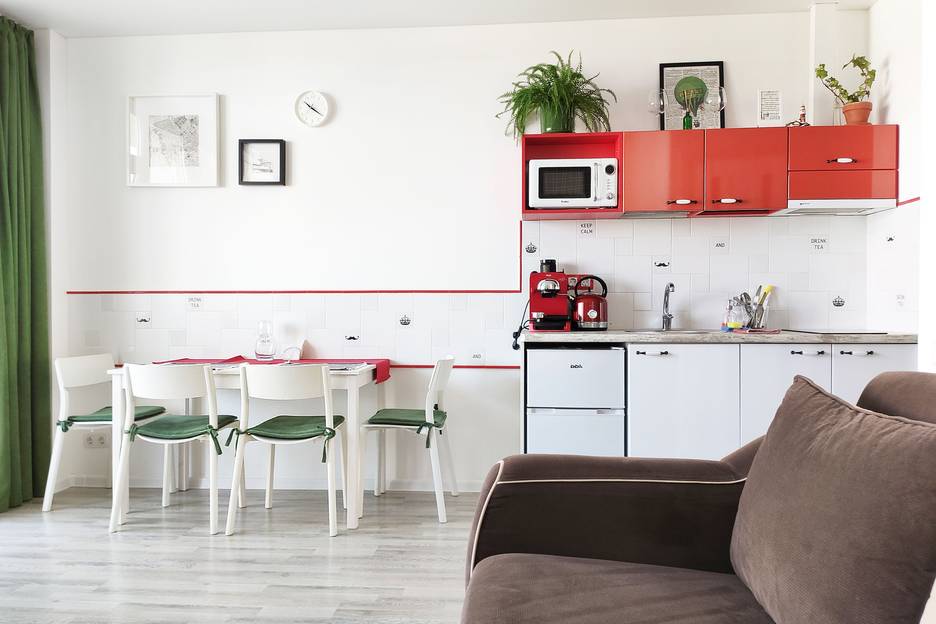 2 удобных раскладных дивана, 4 спальных места, обеденная зона, мини-кухня, большая лоджия с местом для отдыха и прекрасным видом.