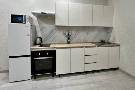 Полноценная кухня со всей техникой: холодильник, плита, микроволновка, чайник