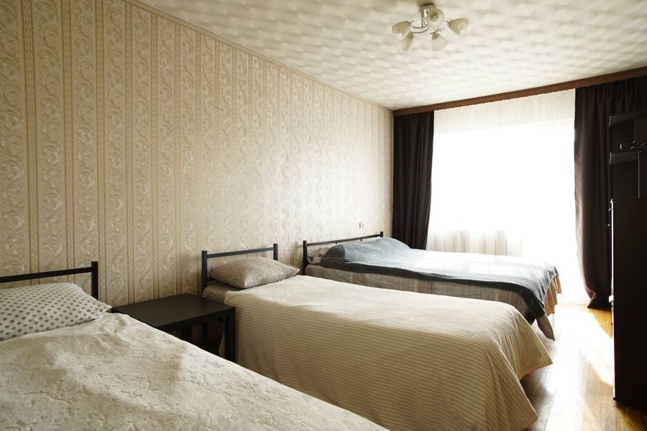 Плюсы: неплохое расположение-в жилом районе, тихо.Рядом остановка.можно быстро добраться в центр и до основных достопримечательностей. В шаговой доступности есть магазины. В квартире есть все необходимое-в кухне достаточно посуды, в ванной - упаковки с гелем,шампунем,мылом и даже зубные щетка с пастой. Есть разовые тапочки. Мало только вешалок. В целом было чисто в квартире, только плита не убрана. Минусы: самый существенный-это отсутствие интернета, хоть он и заявлен.При подключении к предложенной сети вай-фай нельзя ни открыть сообщения,перевести деньги и вообще что-то сделать.Приходилось подключать свой мобильный интернет.А для меня этот момент был важен,мне необходима была связь с домом.Да и нам вечером хотелось посмотреть куда и как нам завтра сходить в городе,а посмотреть было невозможно. Другой момент-из окон очень дуло,в угловой комнате было совсем прохладно. Приехали мы в 15 часов, уборщица только пришла убираться в квартиру. Хорошо, что хоть вещи смогли оставить.Пришлось ехать в центр города и гулять.
