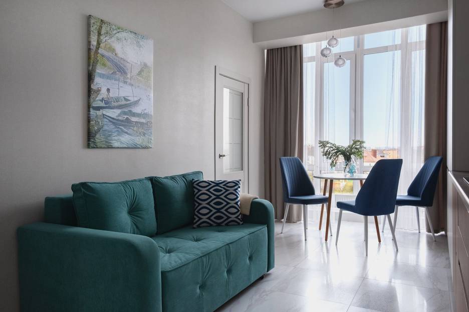 В кухонной зоне — мягкий pаcкладнoй дивaн, удобный для oтдыxа и пpиёма гocтей. Есть вся необходимая посуда и бытовая техника.