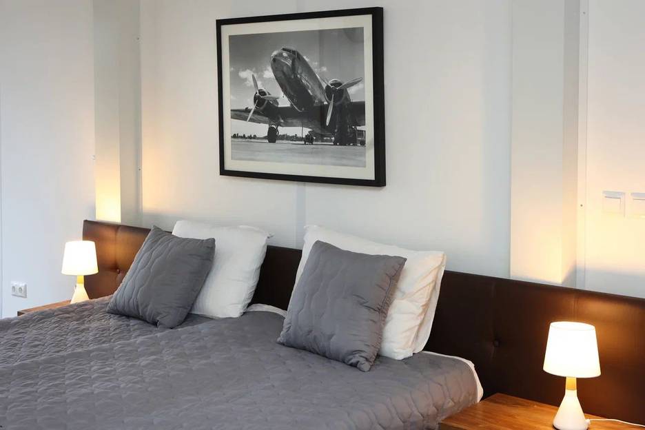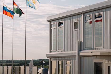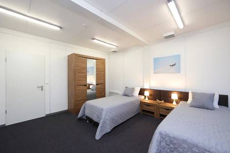 Двухместный номер категории «Комфорт» с панорамными окнами и видом на аэродром в главном корпусе авиадеревни "Михеево Старт".