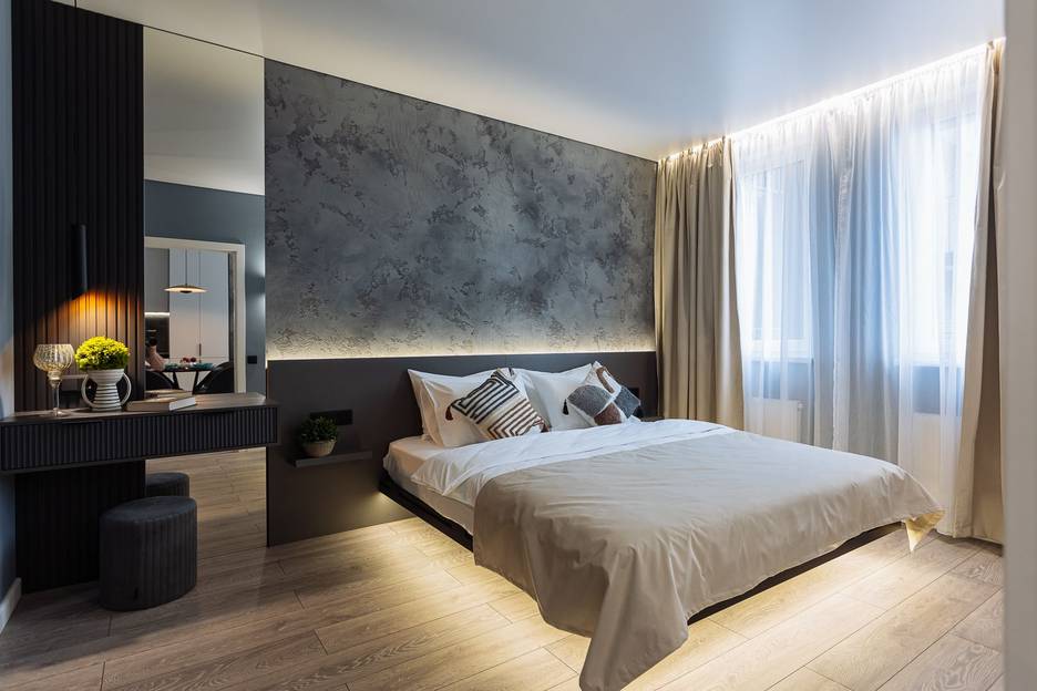 •Просторная однокомнатная квартира 44 кв. м на 4‑м этаже нового дома встречает вас свежестью, чистотой и продуманным интерьером.