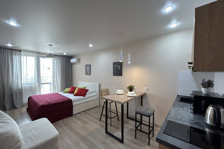 Квартира по фото совпадает. Но в квартире запах сырости, как пользоваться духовкой и вытяжкой не показали, посуда грязная. Кровать и диван продавленые.