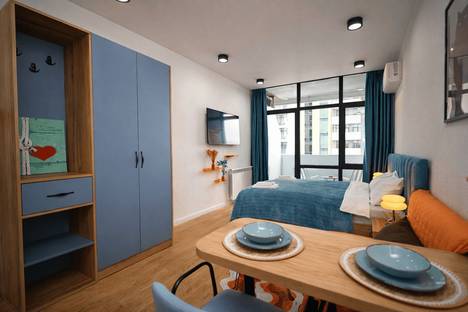 Современная и стильная студия в одном из лучших жилых комплексов Батуми — Black Sea Towers, расположенном на Аллее Героев. До моря и набережной всего около 500 метров (5–10 минут пешком).