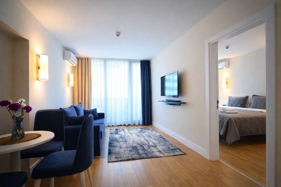 В квартире есть отдельная спальня и гостиная, совмещённая с кухней, а также балкон с прекрасным видом, где приятно встречать рассветы и закаты.