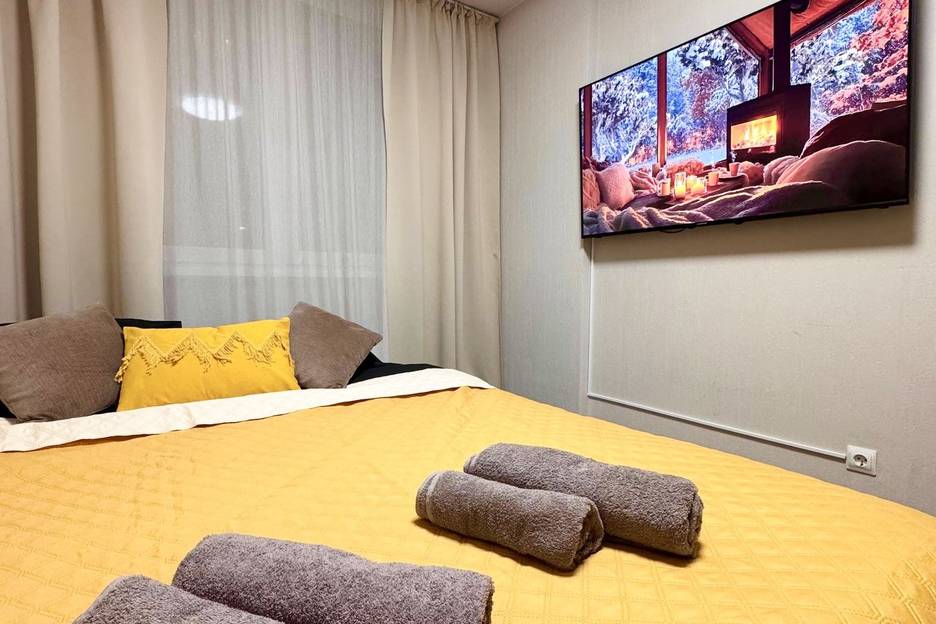 Размещение до 4-х человек: двуспальная кровать, односпальный диван (раздвигается в длину) и раскладушка.