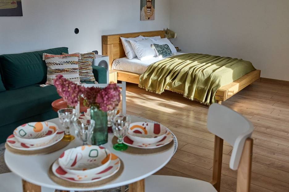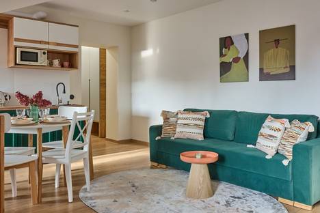 Близость к центру города и тихий уютный двор – это удачное сочетание, которое позволяет наслаждаться комфортом и полноценно отдыхать в этих светлых и современных апартаментах.