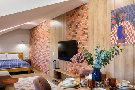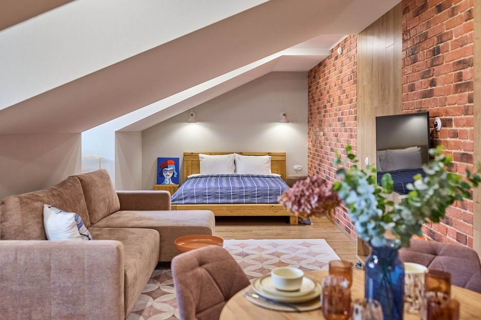 Эта новая стильная студия расположена в самом центре Гродно, в шаговой доступности от всех достопримечательностей. Неподалеку находятся два вокзала, что очень удобно для гостей, путешествующих общественным транспортом. Из окон открывается завораживающий вид на историческую застройку города.