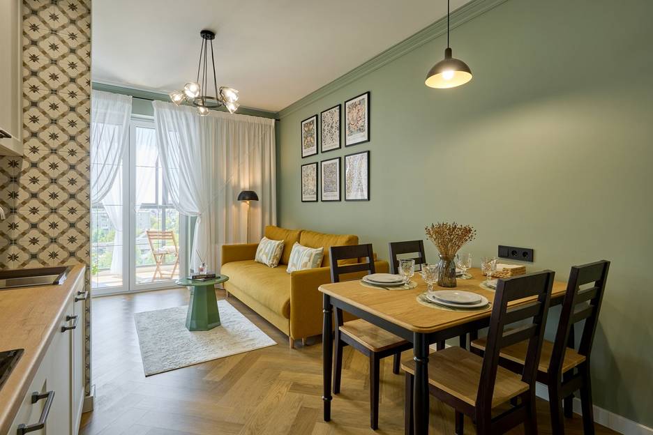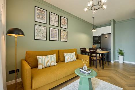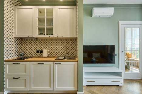 Евродвушка в новом элитном ЖК Представляем Вам современную и комфортную квартиру формата евростудии. Это удобное решение, которое сочетает в себе кухню-гостиную и отдельную спальню. Интерьер апартаментов выполнен в пастельной гамме с добавлением ярких акцентов. Квартира прекрасно подойдет для командировок или отдыха! Здесь есть: вся необходимая бытовая техника (включая кондиционер); высокоскоростной wi-fi; гигиенические принадлежности. Отдельного внимания заслуживает панорамный балкон, где можно уютно позавтракать или расслабиться вечером! Апартаменты находятся в новом жилом комплексе недалеко от центра, включающем в себя закрытый двор, подземный паркинг, спортивные площадки, кафе и магазины.