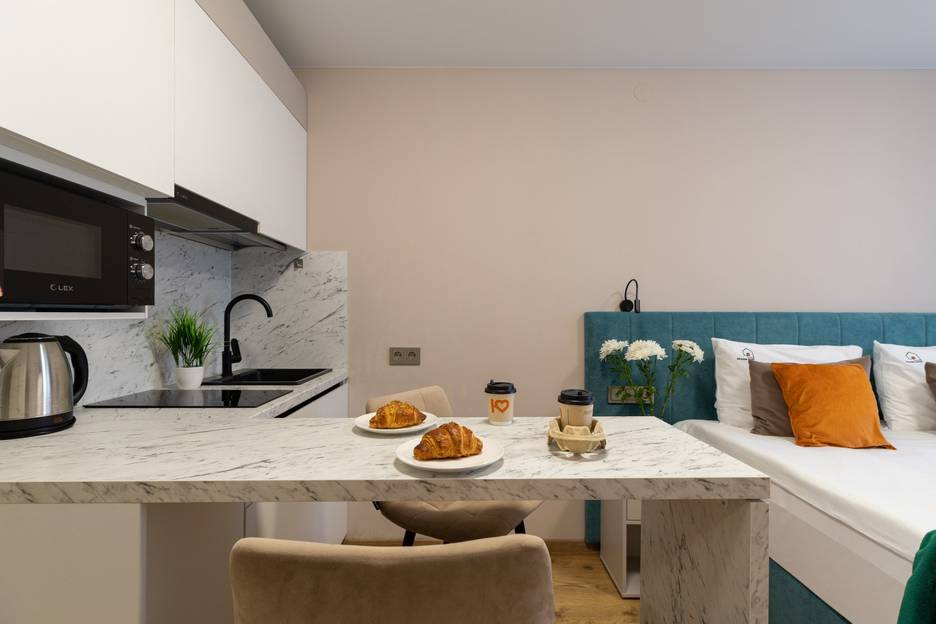 Хорошая студия, небольшая, но чистая, уютная, все необходимое имеется. Заселение бесконтактное и беспроблемное. Район удобный, рядом много магазинчиков, кафе и кофейни. Хозяину - спасибо за гостеприимство! Обязательно вернемся снова.