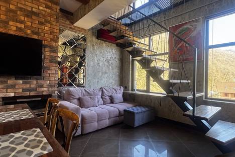 Роскошные двухуровневые апартаменты с авторским дизайном в эсто-садике с удобной локацией: напротив подъемника «Красная поляна». В пешей доступности магазины, кафе, рестораны, прокаты оборудования.