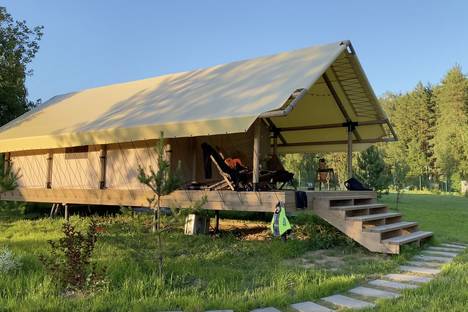 | Теплый сафари-тент для 2-3 человек на берегу Можайского водохранилища | Кондиционер | Кофемашина Nespresso | Теплый пол | Мангал | Wi-Fi | Pet-friendly | Бесконтактное заселение | Баня | Джакузи | Банный чан | Прокат сапов |
