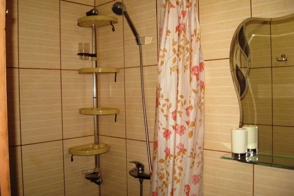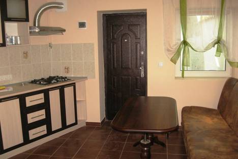 Коттедж в частном секторе. 1 этаж: студия, в которой располагается укомплектованная кухня, двуспальный диван, санузел, встроенный шкаф, ТВ(кабельное). На второй этаж лестница(правильная, безопасная).2 этаж: Двуспальная кровать(2х1.6), мягкое односпальное место, туалетный столик, встроенный шкаф, кондиционер, кабельное ТВ. Везде интернет WI-FI. Холодная и горячая вода постоянно(бойлер). Двор зеленый(виноградник, орех), все наши окна выходят к нам во двор, на улицу окна не выходят. Во дворе мангал-барбекю, летняя мебель для отдыха на улице.