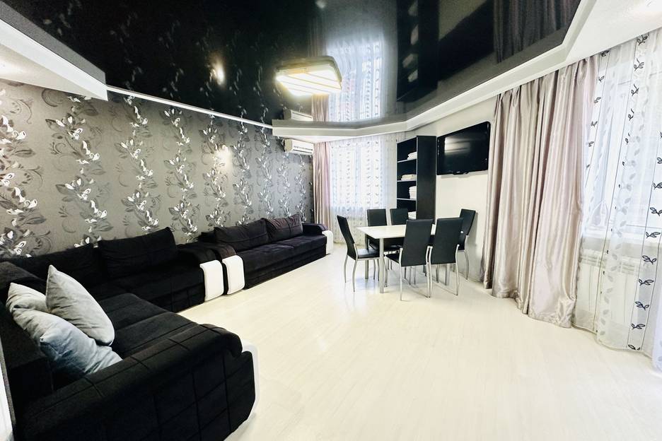 Описание квартиры от «Flats-Line» в Брянске по ул. Красноармейская, 100 ✔ Двухкомнатная квартира с потрясающим стильным ремонтом, из высококачественных материалов, установлена кухня с набором посуды, встроенной техникой. СПАЛЬНЫЕ МЕСТА: 2+2+2 (двуспальная кровать и два двуспальных раскладных дивана)